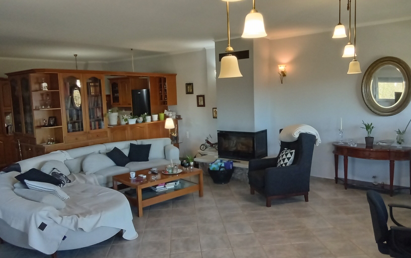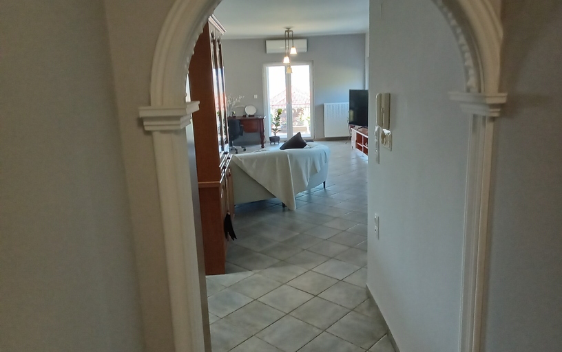 • Ενιαίος χώρος κουζίνας-σαλονιού με διαχωριστικό πάσο
